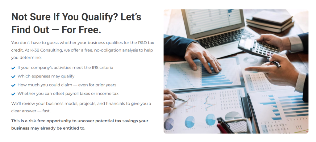 Navigating the R&D Tax Credit process can be complex. K-38 Consulting, LLC specializes in assisting businesses to identify eligible research activities, calculate credits, and prepare all required documentation for IRS compliance.